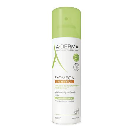 Wirkt der Mikroentzündung entgegen und beruhigt sofort trockene zu Neurodermitis neigende Haut und mildert durch Hauttrockenheit verursachte Irritationen. Exomega Control geschmeidigmachendes Spray reduziert die Häufigkeit eines Schubes der atopischen Dermatitis.