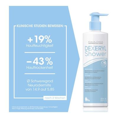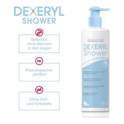DEXERYL Shower Duschcreme wurde speziell zu sanften Reinigung und feuchtigkeitsspenden Pflege für alle Arten von sehr trockener Haut und Neurodermitis entwickelt. Säuglinge, Kinder, Erwachsene. Ab Geburt.