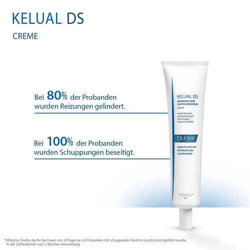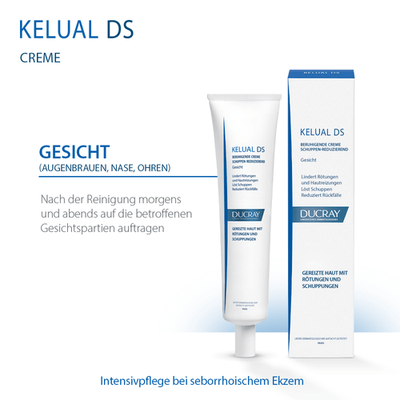 DUCRAY KELUAL DS Creme wirkt auf alle 3 Hautsymptome bei Dermatitis: Die Creme reguliert die Abschuppung, löst Schuppungen und lindert Juckreiz sowie Rötungen. Die Neubildung von übermäßiger Hautschuppung im Gesichtsbereich wird gehemmt und ein erneutes Auftreten verhindert. Die DUCRAY KELUAL DS Creme wirkt entzündungshemmend, hemmt das Pilz- und Bakterienwachstum und reguliert die Talgproduktion. Sichtbar und spürbare Verbesserung des Hautzustandes bereits nach 1 Woche. Der Haut wird ein angenehmes, weiches und glattes Hautgefühl verliehen. Die Creme ist ohne Duftstoffe und hat eine nicht-fettende Textur. Hervorragende Verträglichkeit dermatologisch getestet und bestätigt.