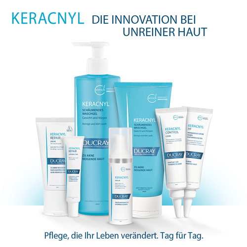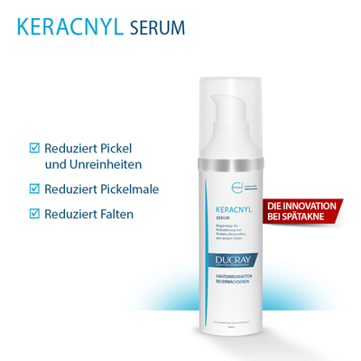 Das KERACNYL Serum ist eine effektive 3-1-Pflege für zu Spätakne neigende Haut. Das leichte und feuchtigkeitsspendende Serum reduziert Pickel, Pickelmale und Falten in einer Anwendung.