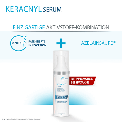 Das KERACNYL Serum mit 3-fach Wirkung hat eine innovative Formulierung mit Myrtacin und eine zusätzliche Anti-Aging Wirkung.