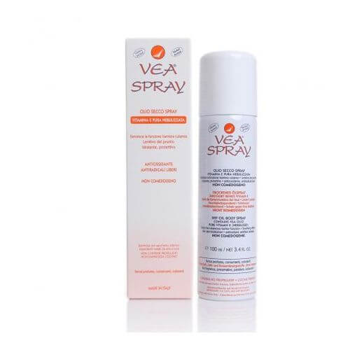 VEA SPRAY: leichte und sichere Anwendung. Achtung: sehr ergiebig, ein einmaliges, kurzes Sprühen ist ausreichend für eine grosse Hautfläche. • nicht fettend • feuchtigkeitsspendend bis in tiefere Hautschichten • juckreizlindernd • einfach in der Anwendung • macht die Haut weich und elastisch • Kann Dehnungsstreifen vorbeugen VEA SPRAY mit innovativer Formulierung: es erlaubt das Auftragen von VEA OLIO (reines Vitamin E–Acetat) auf ausgedehnte Hautflächen und bildet dort einen dünnen Film von reinem Vitamin E. Der Vorteil von VEA SPRAY besteht bei Bedarf darin, dass es ohne Berührung oder Reibung gleichmäßig auf die Haut aufgesprüht werden kann. Es enthält kein Wasser, keine Duft-, Farb- und Konservierungsstoffe, um Allergien zu minimieren. Anwendungsbereiche: Schutz bei trockener und geröteter. Ideal bei ausgedehnten oder behaarten Körperflächen. Durch die feuchtigkeitsspendende Wirkung schützt es vor Hauttrockenheit auch im Alter und lindert altersbedingten Juckreiz. Bei regelmäßiger Anwendung kann es der vorzeitigen Hautalterung und Hautschäden der Haut durch übermäßige Sonneneinwirkung entgegenwirken. Als After-Sun. Feuchtigkeitsspendend nach der Dusche oder dem Bad. Vermeidet das Spannungsgefühl nach dem Rasieren. Zum Reinigen des Gesichts und der Augen, auch bei wasserfester Wimperntusche. Kann Dehnungs- oder Schwangerschaftsstreifen vorbeugen oder mindern. Schützt die Haare sowohl gegen äußere Einflüsse, wie z.B. Sonneneinstrahlung, als auch gegen belastende kosmetische Behandlungen wie Färben, Dauerwelle oder Glätten. Kräftigt brüchiges Haar und verhindert doppelte Spitzen. Anwendung: zweimal täglich, falls erforderlich öfter, auf die zu behandelnden Hautpartien aufsprühen und einige Sekunden einziehen lassen. Sanftes Einmassieren fördert die Aufnahme des Produktes und gewährleistet ein ergiebigeres Auftragen