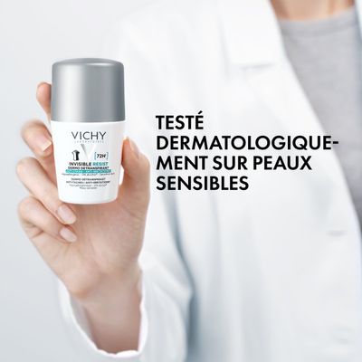 Der Vichy Deo Roll-on 72h Anti-Flecken Invisible reguliert bis zu 72 Stunden lang extreme Schweißbildung und hinterlässt dank seiner Anti-Flecken-Formel keine gelblichen und weißen Rückstände auf farbiger Kleidung. Durch den hypoallergenen Wirkstoffkomplex und die alkoholfreie Formel, ist das Deodorant besonders hautfreundlich und somit für empfindliche Haut geeignet.